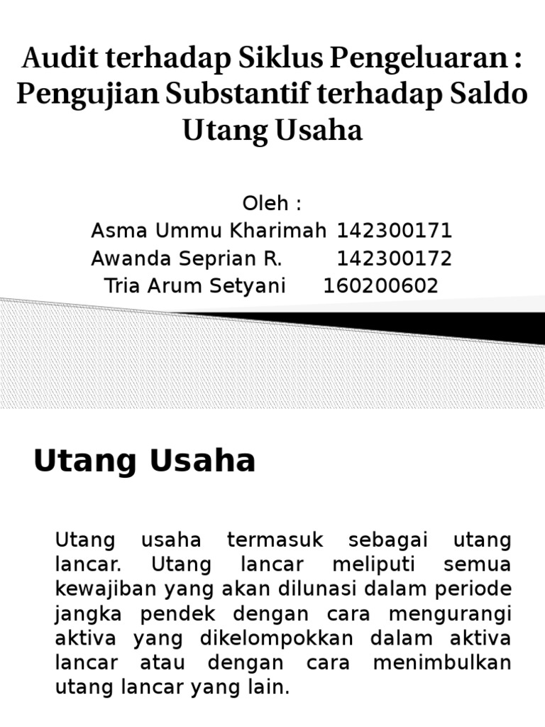 Best of Audit Terhadap Siklus Pengeluaran-Pengujian Substantif Terhadap Saldo Utang Usaha site